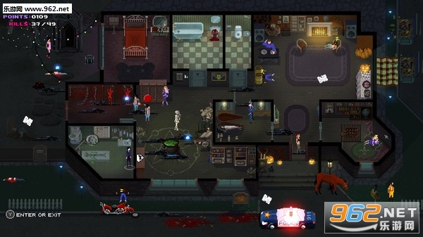 你的最终目标是不被警察逮捕。该作采用上帝视角,能让你看清整个地图和每个人的位置,你需要小心地用刀杀死他们。地图被分成多个房间,这样你可以先潜入房间寻到有利位置等待邻居的到来,然后发起致命的攻击。但是如果NPC进入房间看到了尸体,他会立刻打电话报警,这你来说可是个大麻烦。