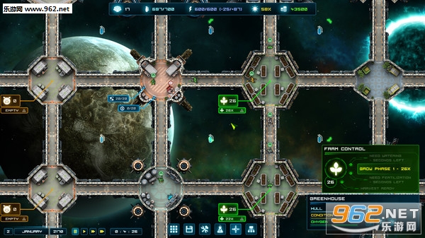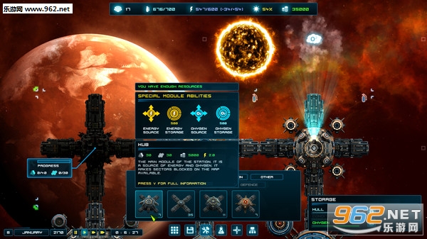 您可以选择30个不同的模块(包括太阳能电池板、研究实验室、船员宿舍、有机农场、温室等),配备各种设施,以确保您的工作站保持功能和安全。每个模块消耗一定量的能量和氧气,需要时间和资源来组装,所以仔细考虑你的选择!