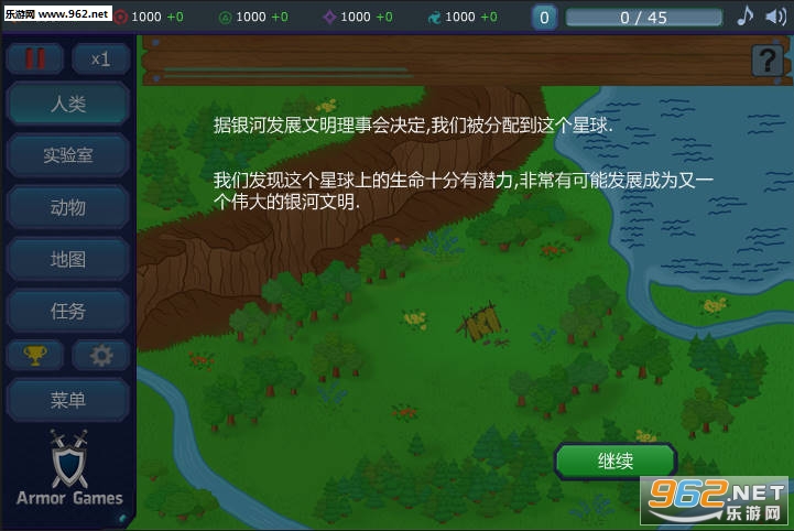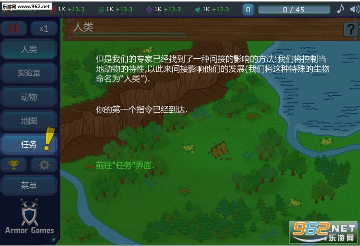 唔..这是一款Flash的小游戏,运用了一个伪造的背景故事,大概的意思就是说地球上本来是没有生物的,外星人发现了这个地方于是派一名使者,也就是玩家在地球上去创造生物...推动文明的发展。