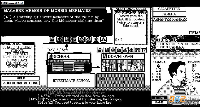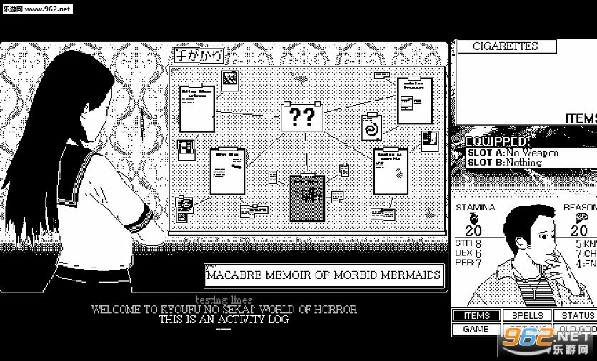 这款游戏的作者并不是日本人,但是却使用了日本背景,据说作者是用windows画板画出来的像素风格游戏,除了对于伊藤润二以及克苏鲁的致敬,也有很多作者原创,从玩法上来说比较类似桌游,《恐怖的世界(World of Horror)》是一款创意十足的漫画风策略文字游戏,目前只有前瞻试玩的版本。