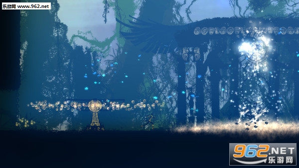 +剪影加光彩的美妙场景,刚开始可能会觉得场景单调,但是很快就和游戏基调统一起来:悠久历史与绚丽色彩,诡谲的神话故事与复杂精致的场景相应,