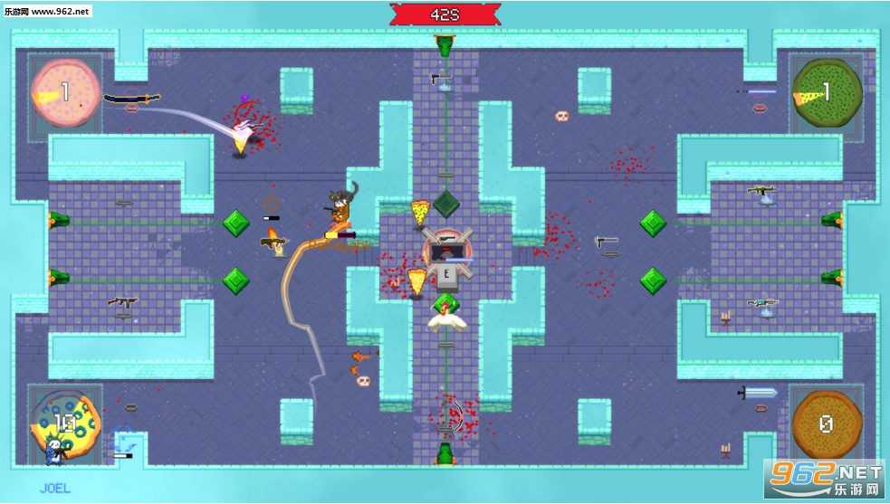 这是一款第三人称平面射击游戏,游戏中我们将扮演一只树懒与其余的玩家或者AI扮演的树懒争夺一块美味的PIZZA。游戏中提供者大量的枪械,我们每杀死对方的树懒便会积分+1,死亡积分-1,游戏中有4中模式可供玩家们自由选择~可定制战斗设置,组队对战选项,自由混战,核武模式。并且游戏中的积分可以换取人物的装备,有超过700中装扮可以提供给玩家选择使用!在这些卡通画面组成的树懒中扮演最独特的一只,能够干掉对方而出彩的那一只吧!