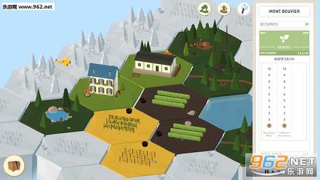 从一块土地开始,最终将你的庄园扩大到33块。你可使用6种不同区域选择,如森林、湖泊等,它们将对周围区域造成不同影响,因此需谨慎选择。