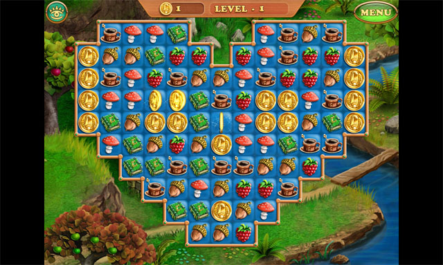 该游戏是一款经典三消类的消除游戏,玩家将最少三种同样的图案放在一起让其消失,消除金币的速度越快,获得的奖励也就越高。通关过程中获得的金币可同来建造一些建筑。