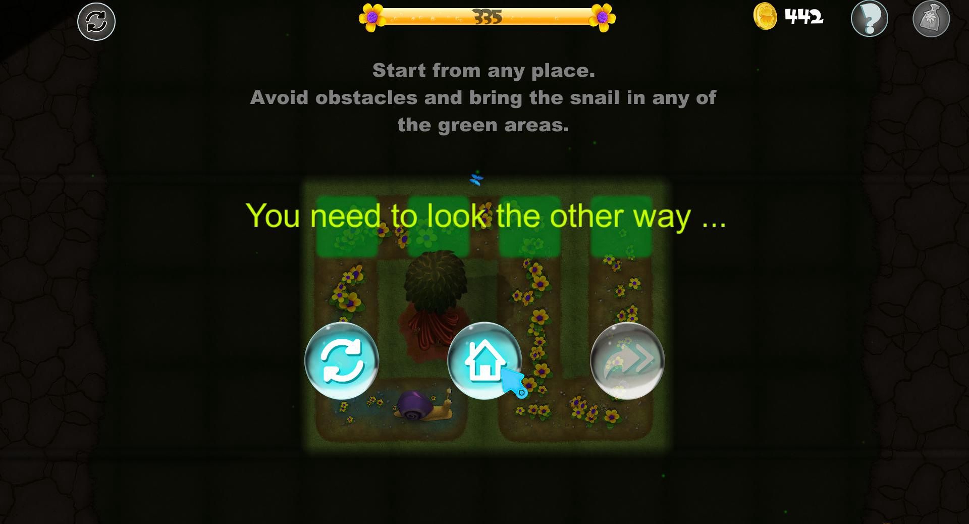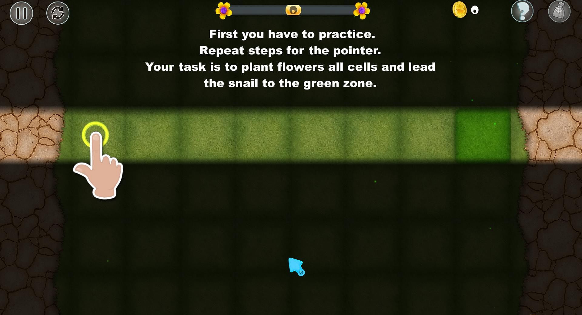 《劳里克:只可前行》的玩法非常简单,你的任务是引导小蜗牛前进的线路,让其可以绕过障碍物,在所有的土地上种满鲜花后,最终停在绿草地上休息。当然小蜗牛在前进的过程中还会遇到河流等其困难,这些困难都需要借助你的智慧才可以解决,冒险过程中需要注意的是,小蜗牛只可以前进不可以后退哦。