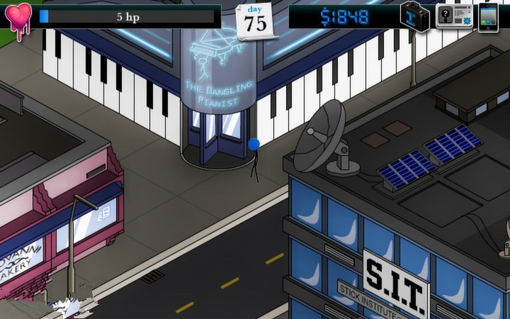 2、在游戏中玩家要控制着火柴人在薄纸城中生存下来,初来乍到,他要熟悉这个城市,通过和指导者的交谈了解自己的任务目标,你可以暂时在这个陌生的城市中住下来,手持有限的金币,你要学会赚钱,才可以从事更多的活动。
