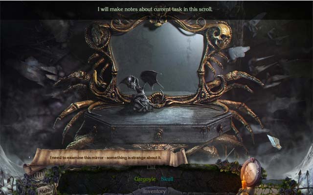 突然洁西卡被一个奇怪的人抓走了,我死命追上去,只看见一面镜子,正疑惑我该做些什么的时候,画面下方出现了清单...一上来就找物呀!于是我捡起了来路不明的小帮手,进入镜中的世界...喔对了,一进去我还救了个同样来路不明像鬼的家伙,身为主角看见什么都要碰一下是应该的。