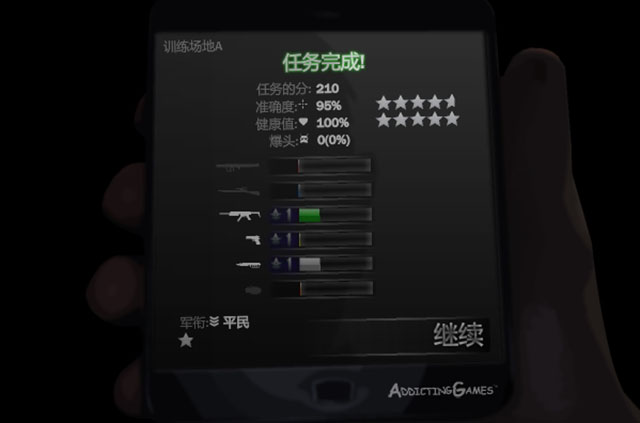 每次任务完成之后游戏都会反馈给玩家统计信息,涉及任务总评分,准确度,健康值,爆头率等内容,当玩家等级提升之后,游戏会解锁一件新武器。战斗中越常用的武器,会获得越多的技能点,而武器同样存在升级性,各种武器升级后会更加杀伤力。