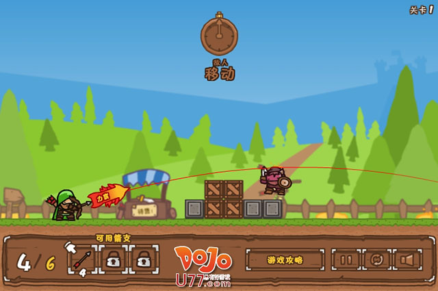 弓箭手:不会移动,但会远程攻击你,需要两箭才能击杀。