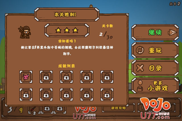 《大箭师鲍比》的玩法很简单,而且操作难度比起愤怒的小鸟也要简单许多,不用花费多大的心思就能通关,不过像每关都拿到三星还是需要多试几遍的,游戏内还有丰富的成就系统可以解锁,还是很值得一玩的。