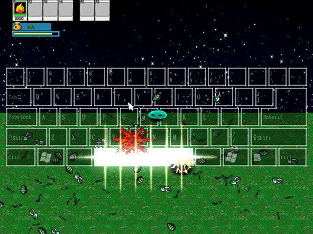 游戏的玩点主要是以按键盘来发动攻击,区别与其他的射击游戏,子弹的发射速度不受限制,另外一个特色就是蓄力攻击,武器升级以后可以蓄力(机枪除外),武器的级别越高蓄力强度就越大,总共有3级蓄力,可以同时按下键盘上的多个键进行蓄力攻击,非常爽快。另外游戏难度的不同,怪物的速度以及数量也不同,简单难度只是一个教程,真正的魅力在于高难度模式,怪物拥有更快的速度,更强的攻击力,更庞大的数量,另外生命道具的掉落也会变少,非常刺激。