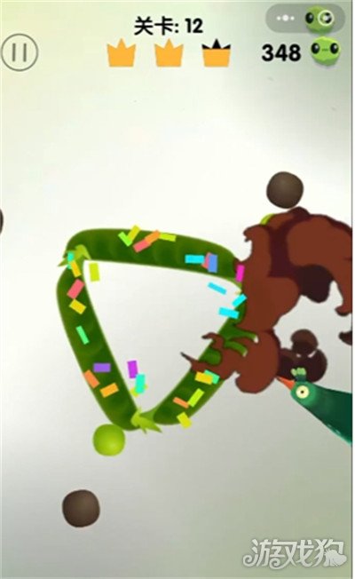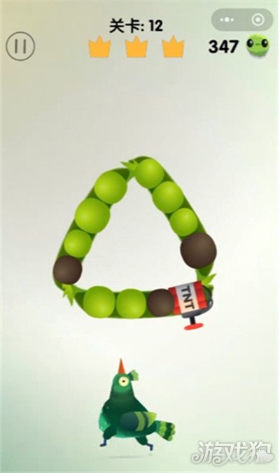 1、这一关的豌豆荚增加一条,变成了三角形,小心避开黑豆快速啄掉青豆