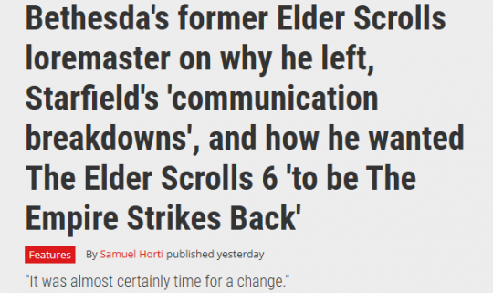 ·Kurt Kuhlmann早在2000年初就加入了B社,当年担任了《上古卷轴5》的主管级设计师,长期从事系列世界观构建管理职责,后续又担任了《星空》的首席系统设计师,就是这样一位资深开发者选择在2026年辞职。