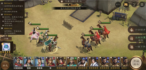 随后右下开大然后再动去右下角,之后太史慈韩当夏侯渊分别利用再动机制站完6个点就可以三星过关了。