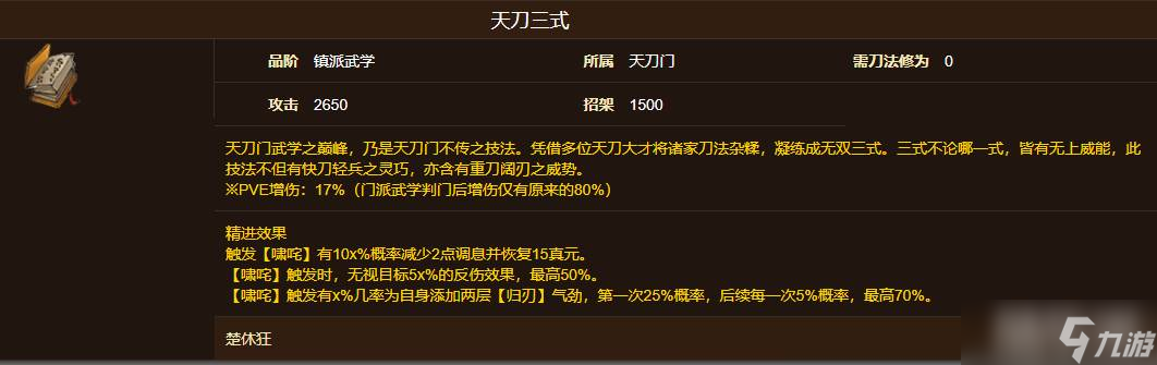 天刀三式:招式受秘技影响变化,但输出波动大,需精准触发二段伤害,对闪避/招架依赖度高。